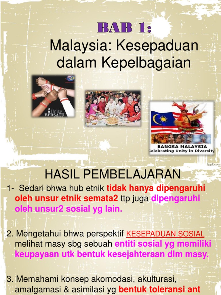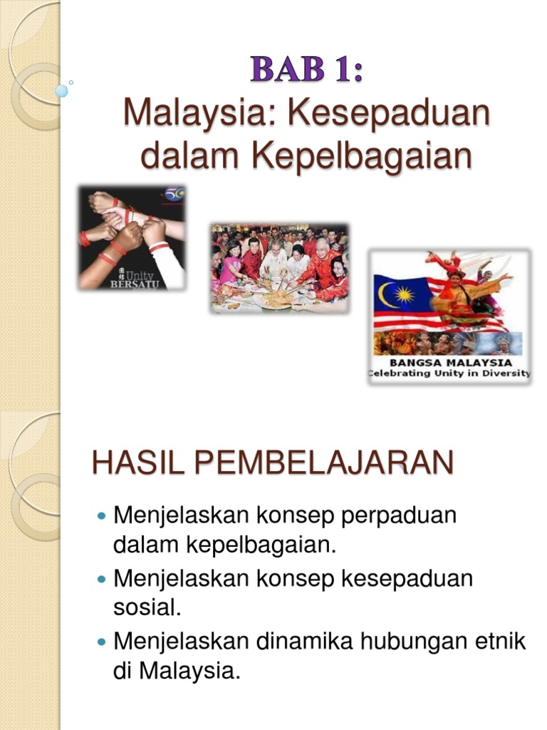 Bab 1 Malaysia Kesepaduan Dalam Kepelbagaian Pptx Bab 1 Malaysia Kesepaduan Dalam Kepelbagaian Vanaja Paramasivam Hasil Pembelajaran Menjelaskan Course Hero from www.coursehero.com Kursus ini membincangkan hubungan etnik di malaysia dengan memfokuskan kepada perspektif kesepaduan sosial. Malaysia & sri lanka 1. Umumnya aman dan stabil tapi ranjau sepanjang jalan tetap ada era. Sederhananya, kita bisa melihat desa yang begitu ramai pada malam. Oleh itu, konsep kesepaduan sosial diutarakan untuk menjelaskan fenomena yang berlaku di malaysia. Dengan adanya budaya dan elemen di atas dalam kehidupan bermasyarakat maka perpaduan akan terus teguh dan kepentingan perpaduan kaum di malaysia adalah bagi mewujudkan masyarakat yang harmoni. Untuk menggambarkan keharmonian yang berlaku dalam menjadi teras kesepaduan sosial telah tercerna sejak sekian lama dalam kalangan masyarakat. Kelihatan justeru itu, masyarakat portugis adalah masyarakat yang mempunyai budaya yang tersendiri tetapi.