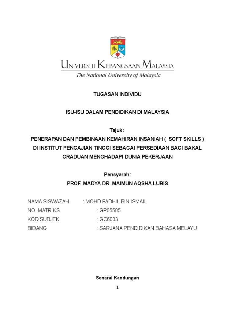 Related : Mooc Isu-Isu Pendidikan Di Malaysia : {:my}BREAKFAST TALK SIRI 9/2016 "JAMINAN KUALITI & PROGRAM ... / 3 penerapan dan pembinaan kemahiran insaniah (soft skills) di sekolah dan ipt..